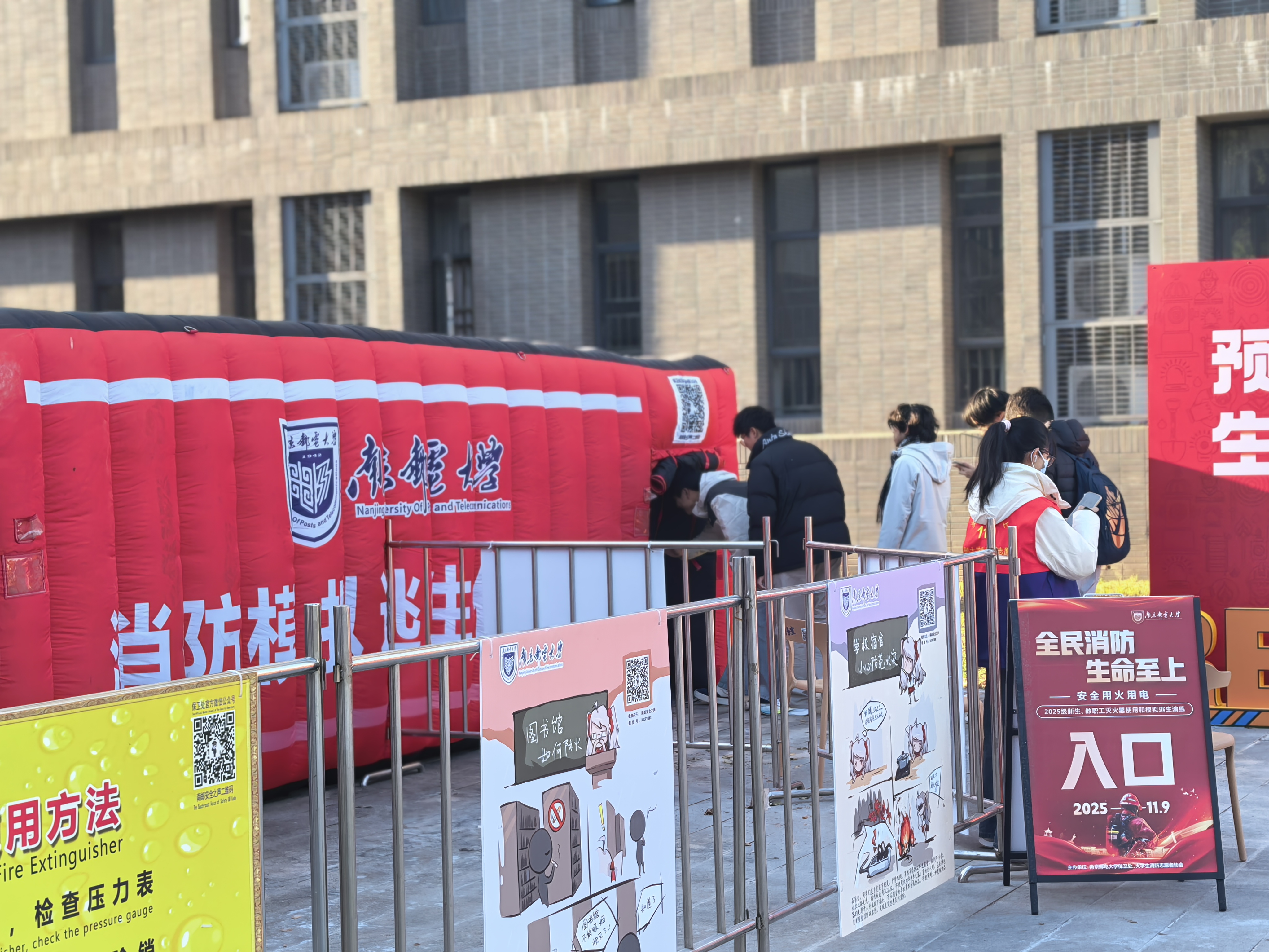同学们在消防员指引下,分组进入充气式的“消防模拟逃生通道”。通道内黑暗、密闭且充满无害烟雾,高度模拟了真实火场环境。大家紧靠墙壁,弯腰前行,在实践中牢牢掌握了“在黑暗中沿疏散指示标志、寻找安全出口”的关键自救技能。最引人注目的环节莫过于灭火器实操。消防员首先现场演示了干粉灭火器的使用口诀——“提、拔、握、压”。随后,同学们踊跃上阵,面对模拟火源,沉着冷静地提起灭火器,拔掉保险销,握住喷管,压下压把。“噗”一声,白色的干粉瞬间喷出,迅速将火焰成功扑灭。亲手操作让同学们大呼“过瘾”,也真正消除了对灭火器的陌生感与紧张感。