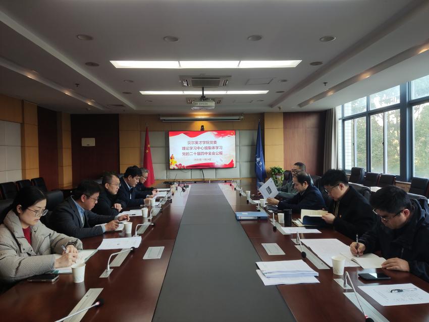 学习发言结束后,郭书记作总结。他表示,这次中心组学习主题明确、讨论扎实、结合实际,取得了良好效果。他强调,全院上下要以此次学习为契机,持续在学深悟透、知行合一上下功夫,切实把党的二十届四中全会精神转化为谋划发展的思路、推动工作的举措和攻坚克难的担当,全力以赴抓好“十四五”收官与“十五五”开局衔接,奋力书写贝尔英才学院高质量发展新篇章。