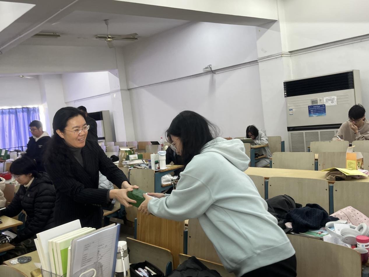 谢校长与学院领导们一起为学子送上我校特别定制的桂花糕,鼓励大家坚定信念、沉着应考,发挥出应有水平。