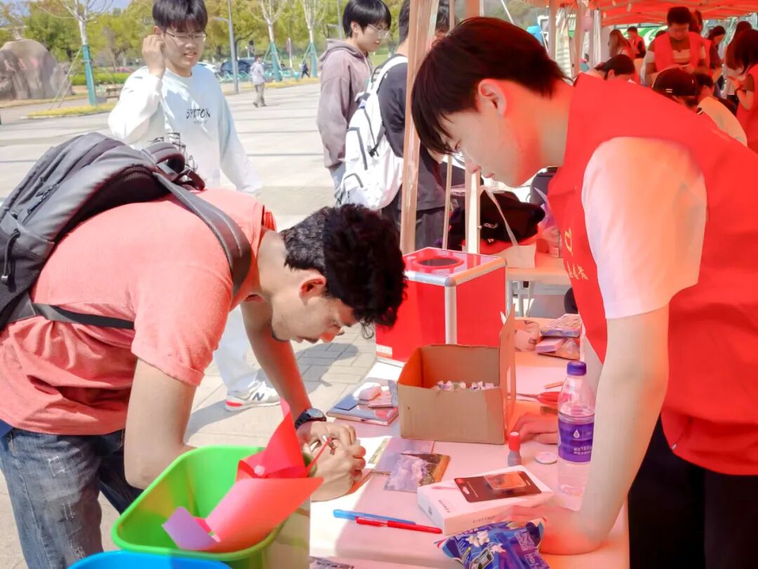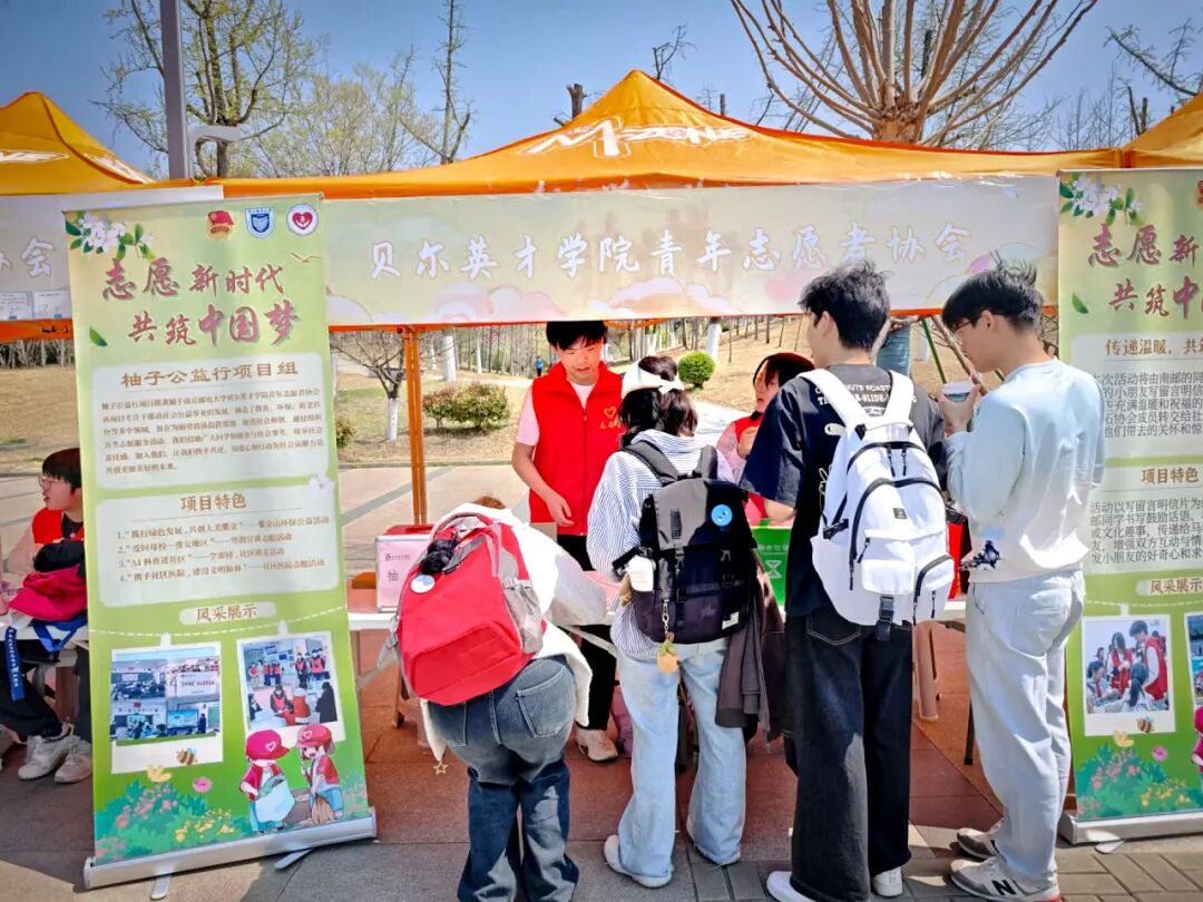 春回大地,春和景明。 在草长莺飞的四月来临之际, 在阳光和煦的鼎新大道, 贝尔英才学院青年志愿者协会 积极参与校公益嘉年华活动。 本次活动旨在倡导社会公益意识,传递正能量,呼吁更多同学加入到公益事业中来,共同为社会贡献爱心、传递希望。作为一场集爱心、创意和乐趣于一体的公益活动,本次公益嘉年华涵盖了各种有趣的互动项目,包括写明信片、垃圾分类小游戏、趣味抽奖等环节,吸引了个学院学生参与。