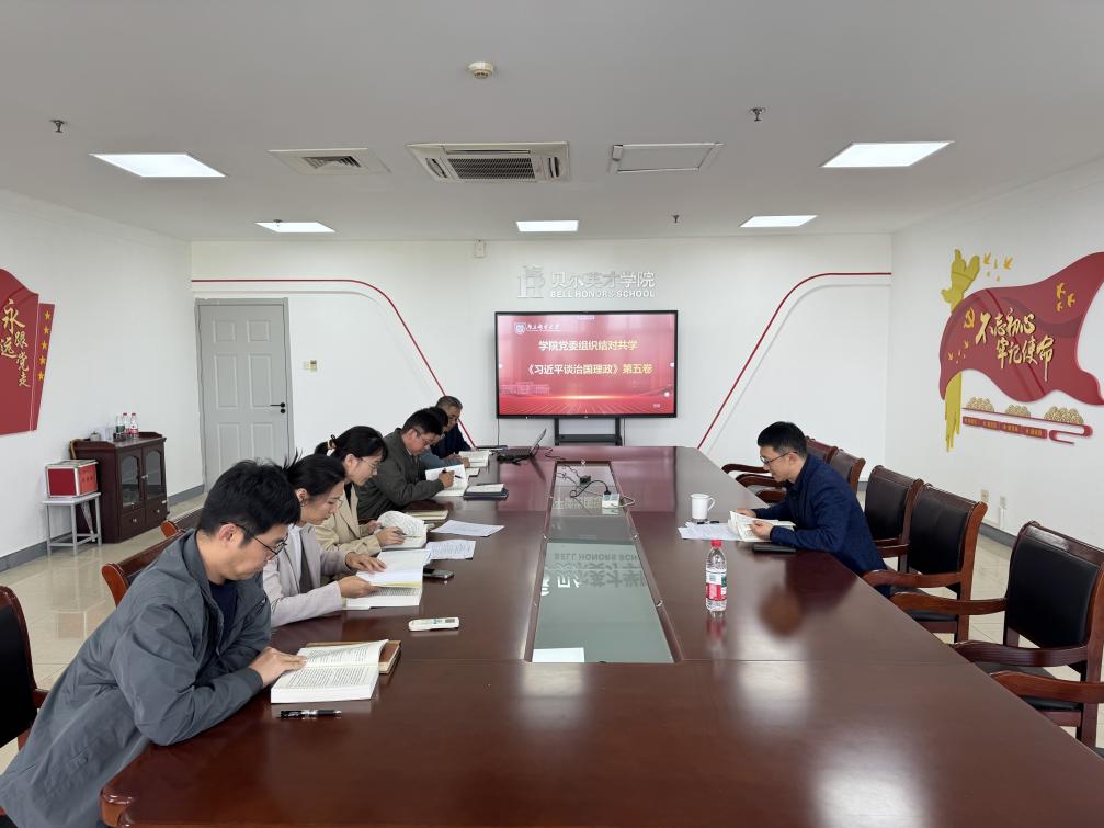 10月22日,贝尔英才学院、创新创业教育学院党委理论学习中心组与贝尔英才学院教工党支部、学工党支部开展“结对共学”活动,专题学习《习近平谈治国理政》第五卷部分章节。学习会由学院党委书记毛建平主持。